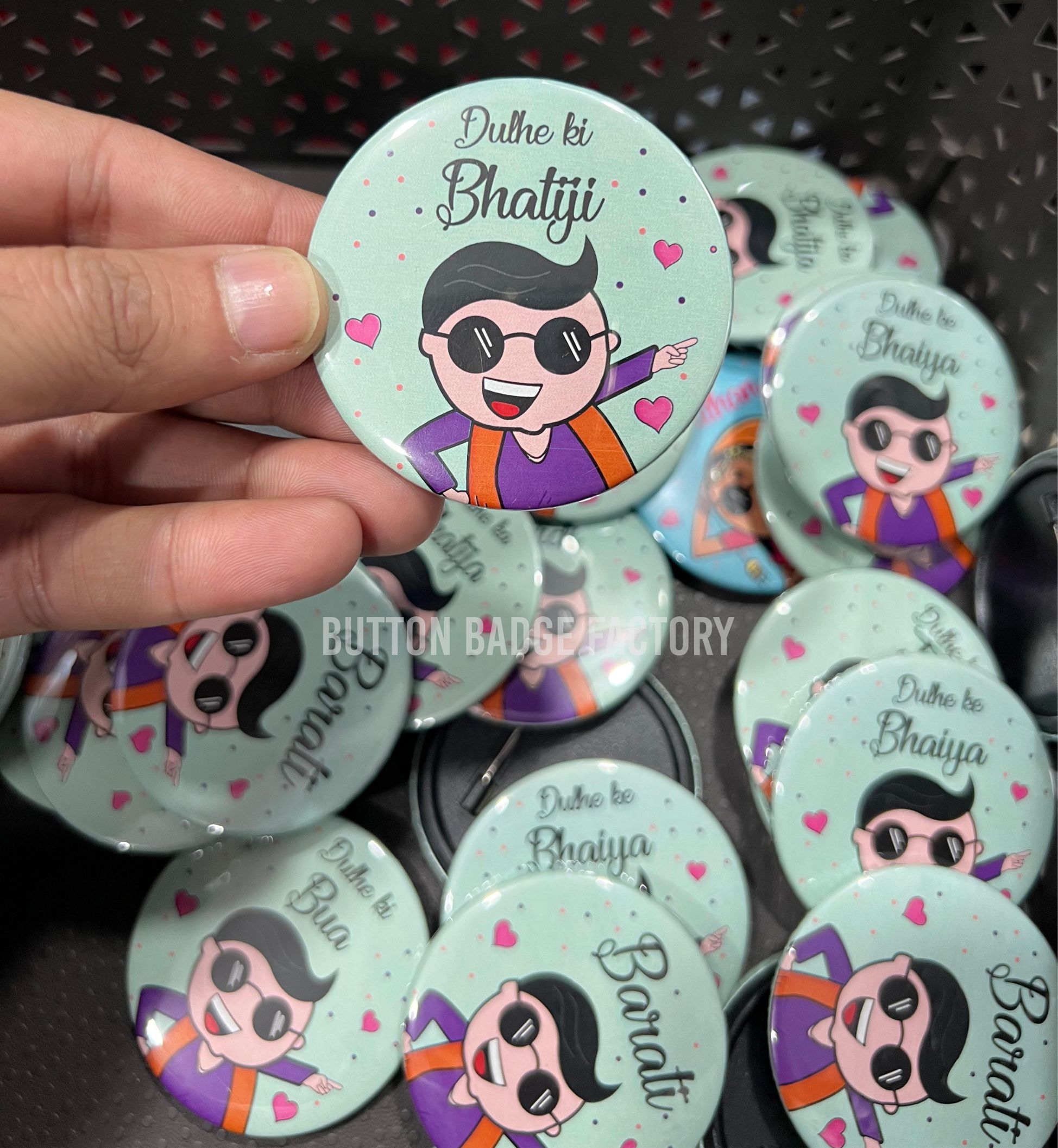 Round Button Badges - Size Available 58mm, 44mm, 32mm with pin, magnetic strip, fridge magnet.