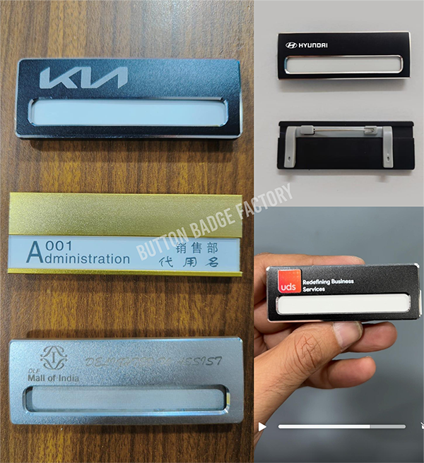 High Quality Name Slip Metal Badges. Engraved or UV printed with Magnet or pin